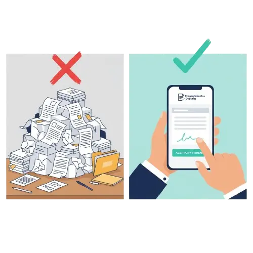 Los consentimientos en papel ocupan espacio, son lentos de rellenar y pueden suponer sanciones si no cumplen con el formato exigido por Sanidad.